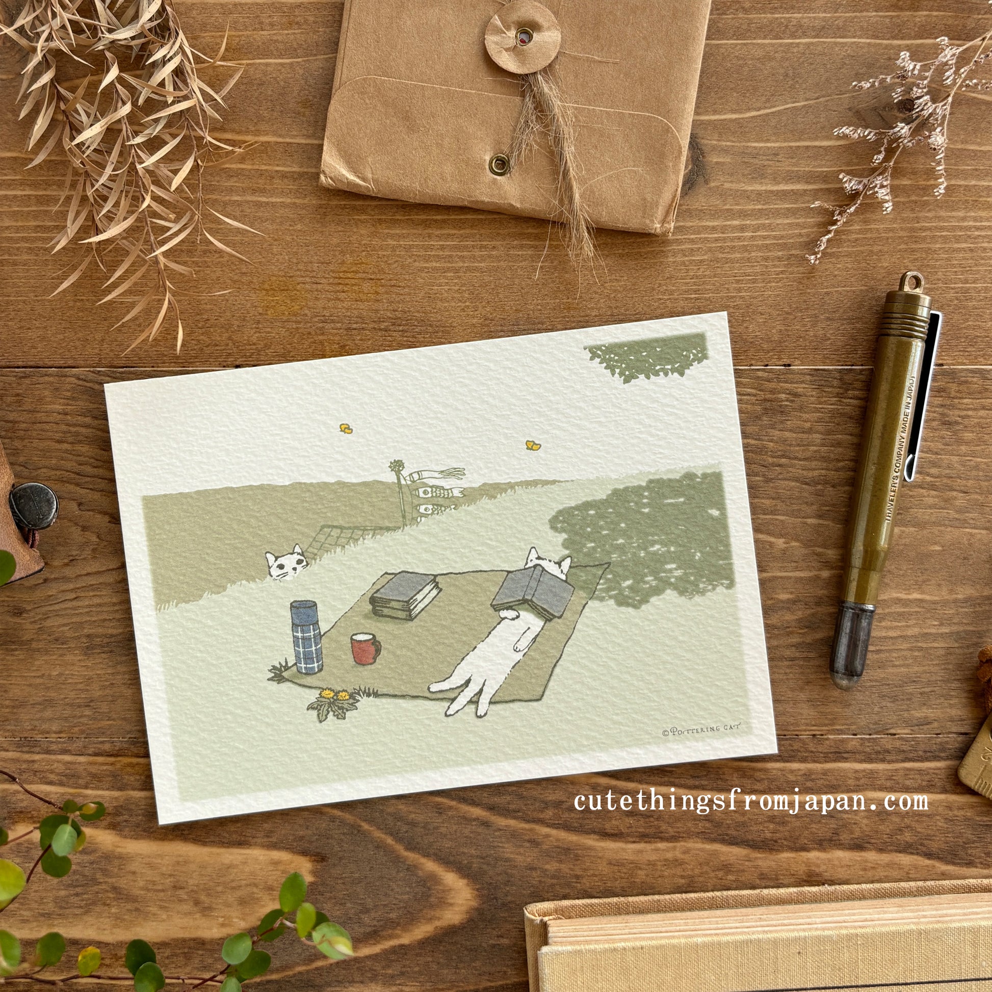 Brighten someone's day with this adorable postcard from the "Cat's 12 Months" collection. Japan's beloved cherry blossom is in full bloom during April, filling the streets with its beauty.