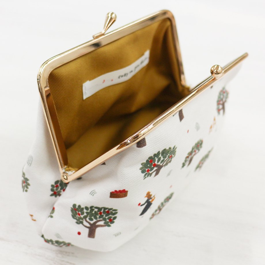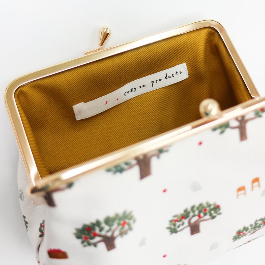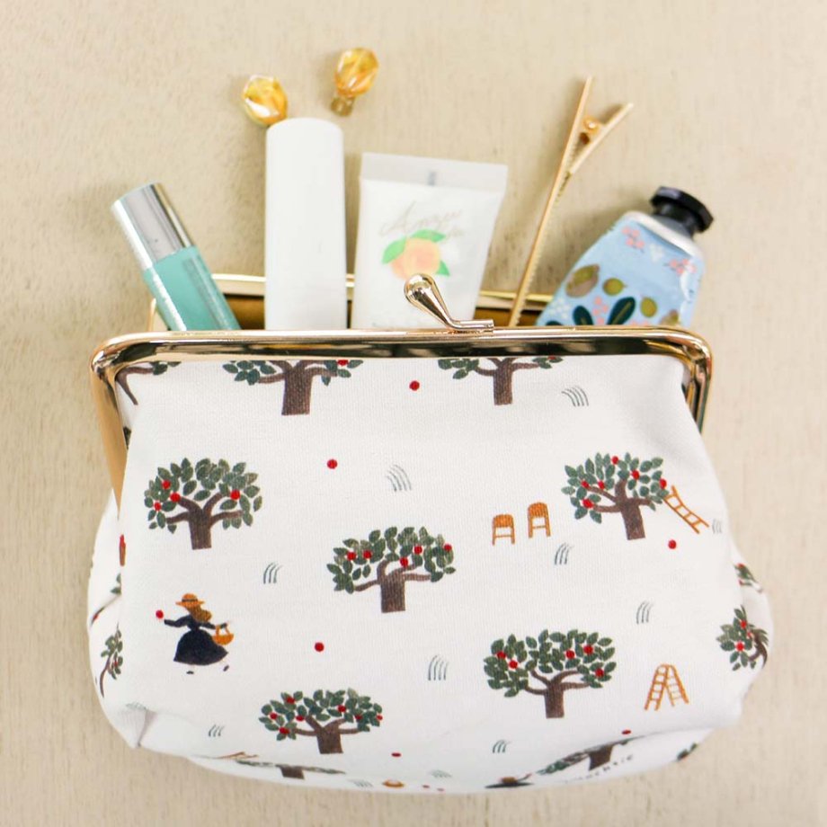 This canvas pouch features a beautiful illustration by Japanese artist Necktie. Known as a "gamaguchi" pouch meaning "opens widely as frog mouth", it opens widely for easy viewing of its contents. Made with durable canvas, it's perfect for storing makeup or brooches. This would also make a great gift!