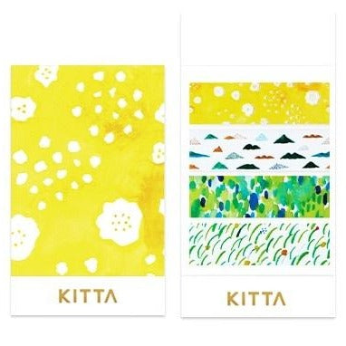 This is a new series "KITTA CLEAR" from KITTA series, handy portable planner sticker set in a beautiful package. The beautiful watercolor design is by a Japanese illustrator Keina Higashide. These are clear film stickers that can be removed and repositioned like washi tape. Each sticker is pre-cut to 5cm long of 4 different designs (10 pieces per designs). You can tuck the cover in the bottom (the white area that says KITTA) to keep it closed.