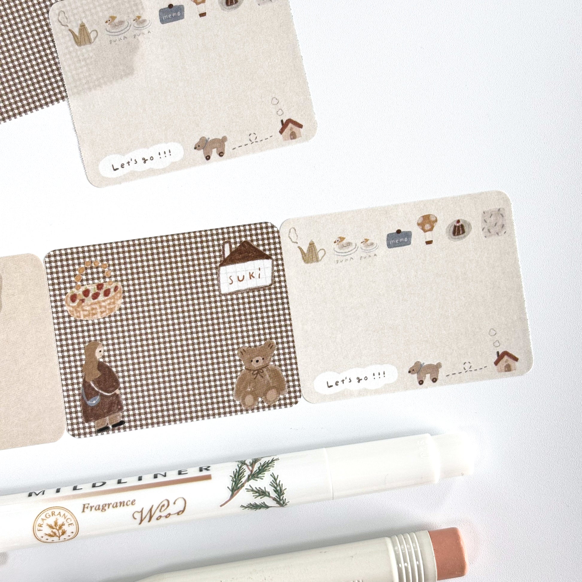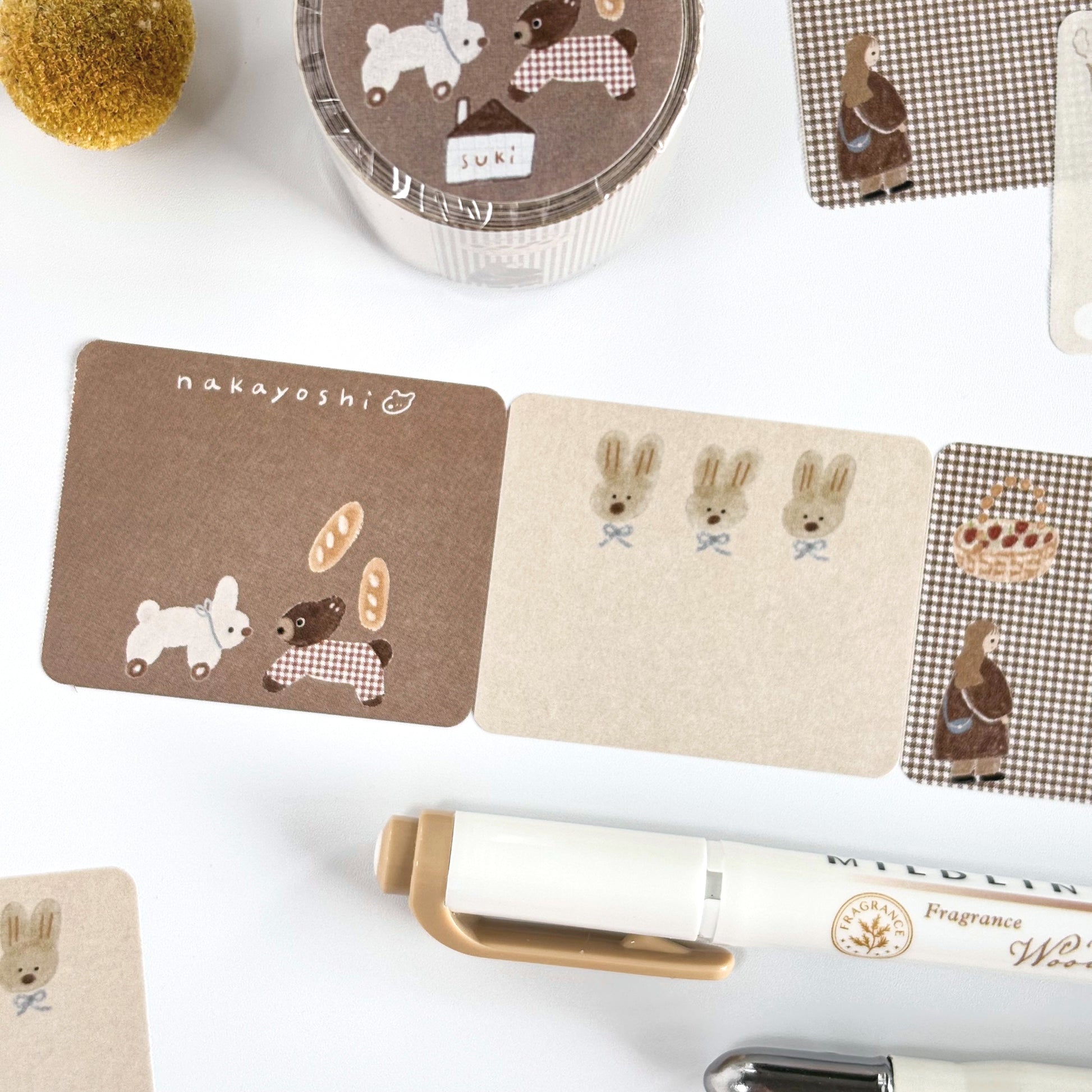 Cute roll sticky notes designed by a Japanese artist Ranmyu is practical and convenient, featuring 4 designs with 25 sheets each, for a total of 100 sticky notes in one roll.