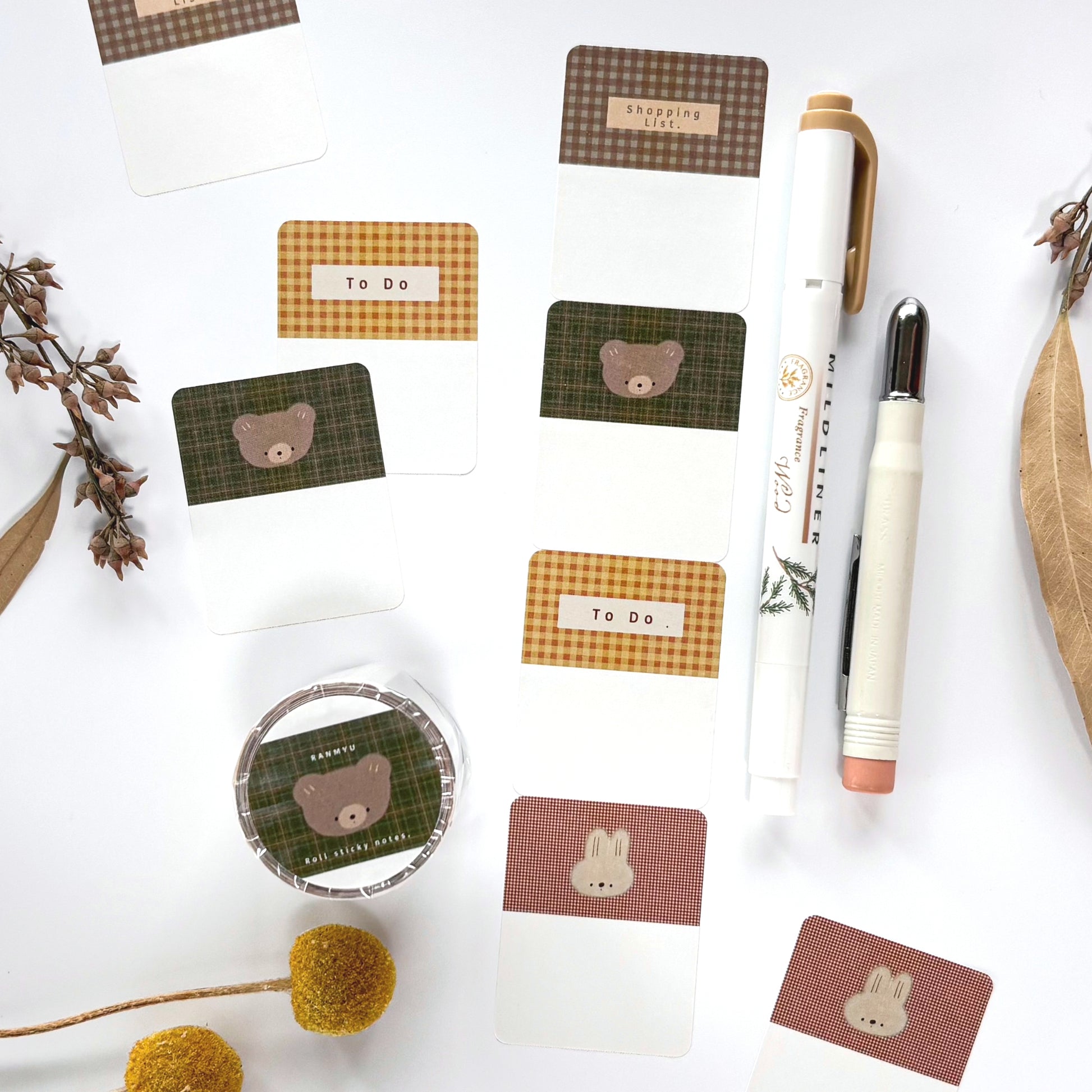 Cute roll sticky notes designed by a Japanese artist Ranmyu is practical and convenient, featuring 4 designs with 25 sheets each, for a total of 100 sticky notes in one roll.