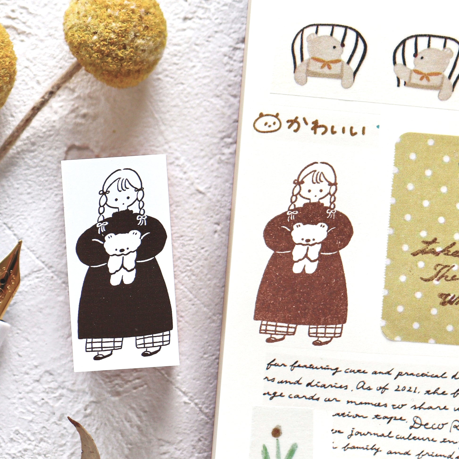 Ranmyu / Rubber Stamp - Girl and Fluffy Bear