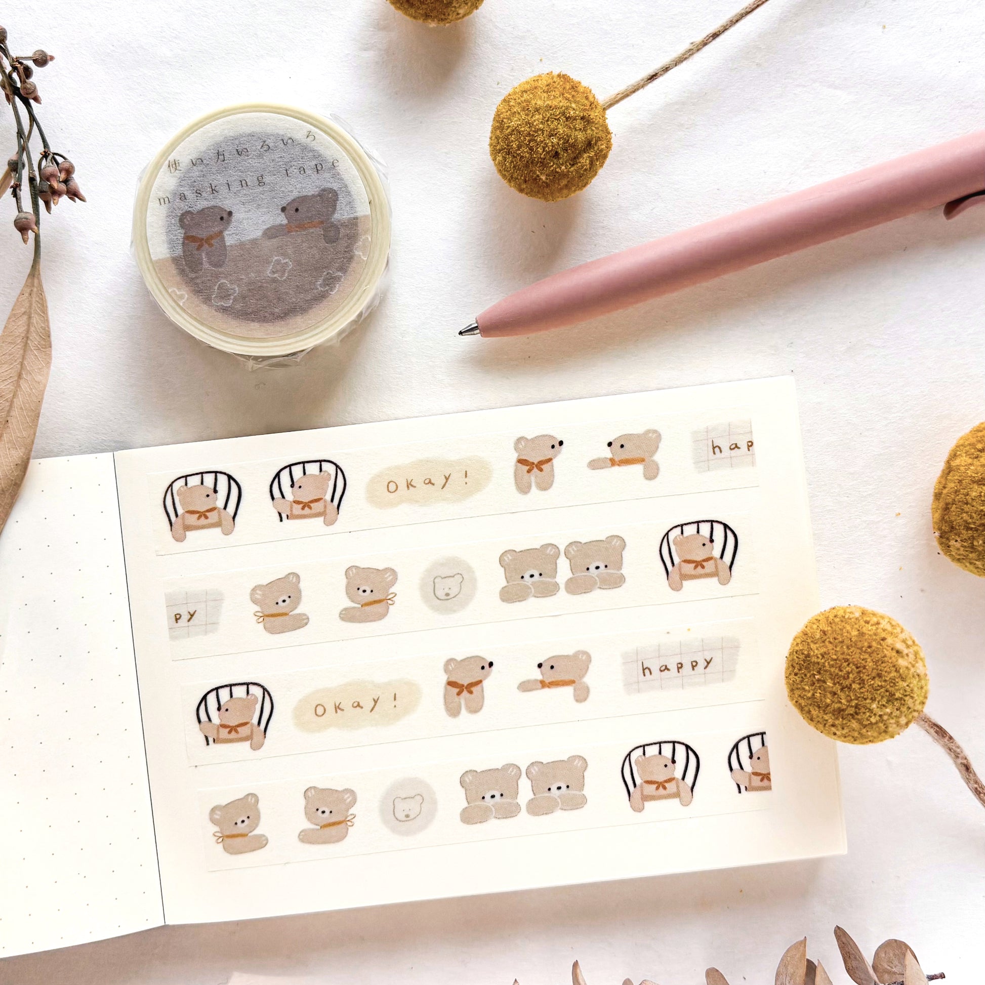 Cute bear washi tape designed by a Japanese artist Ranmyu for your planner and journal decoration.