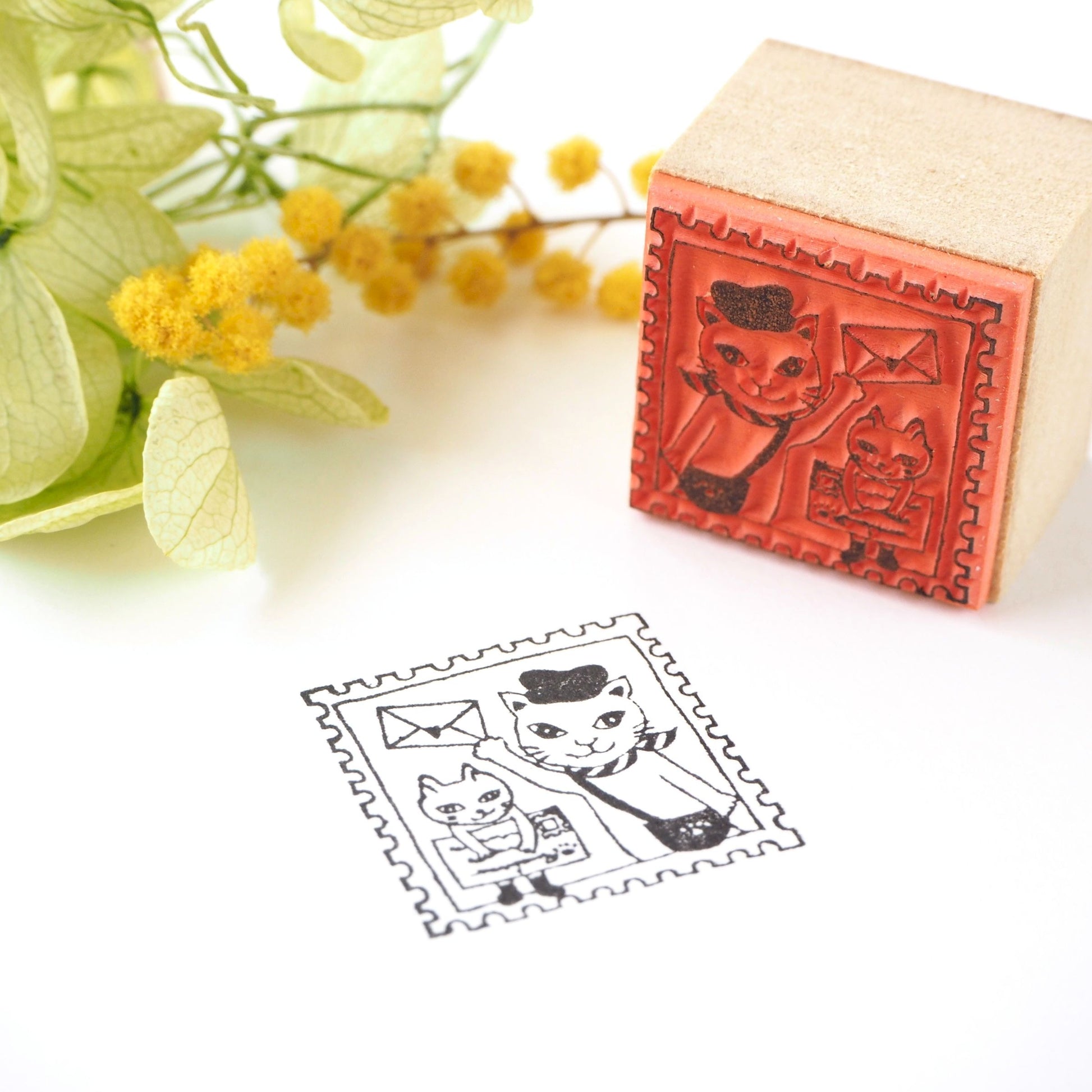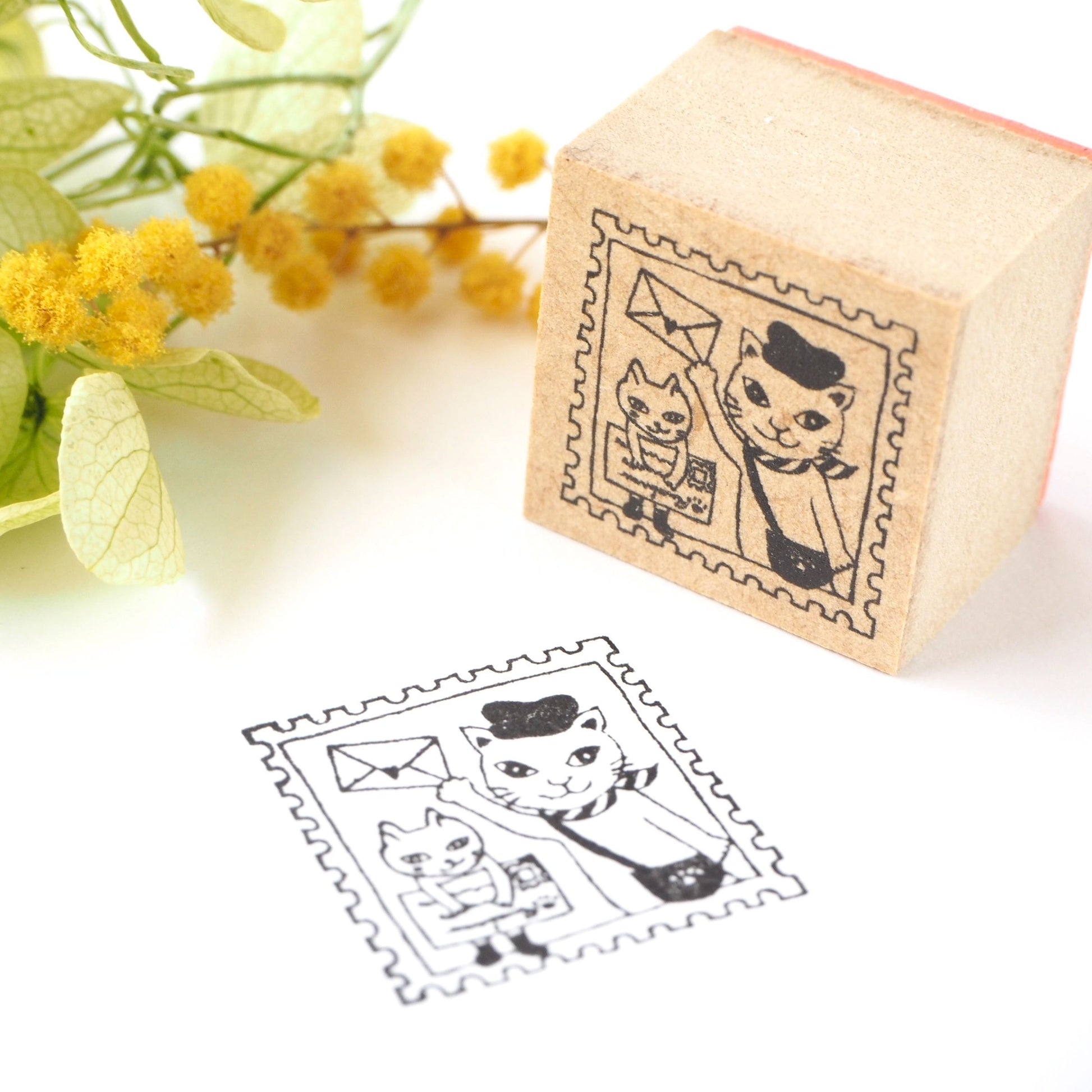 This is a adorable cat delivery rubber stamp designed by Megumi Hori. This design was designed for an event held at Philatelic Museum in Tokyo, and we are very excited to introduce it in our shop! The stamped image is very detailed and clear.
