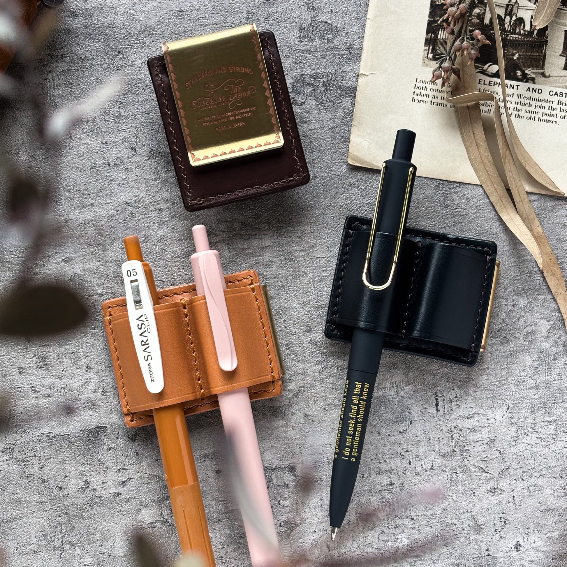 The Superior Labor / INGRASSATO Leather Brass Clip Pen Holder (2 holders)