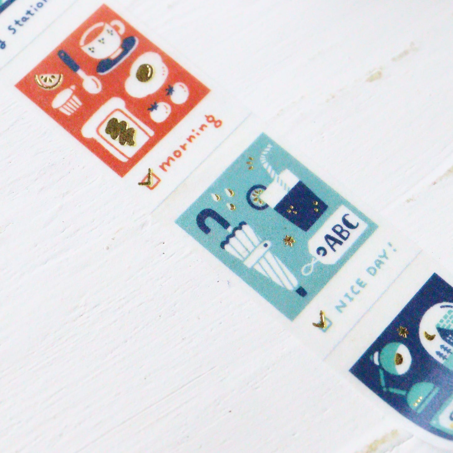 Cute washi tape designed by Japanese eraser stamp artist eric. The gold accents are hot-stamped and shine beautifully in the light perfect for adding a special touch to your crafts and journals. The You can find her adorable work at her Instagram HERE.