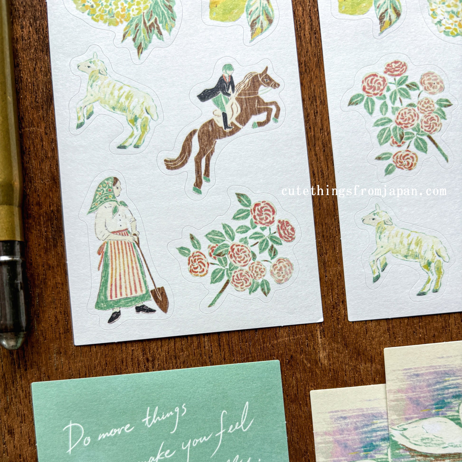 This MIDORI's new flake sticker set includes unique flake stickers created by Japanese illustrator Yuka Takamaru, perfect for adding flair to your planner or journal. Yuka studied traditional Japanese painting in Japan and illustrations in UK, and her illustrations feature vibrant, natural pigments and textures. With 12 sheets of varying sizes, this pack is a must-have for any sticker lover's collection!