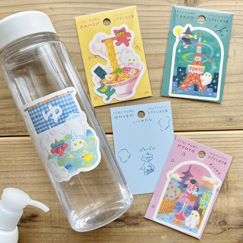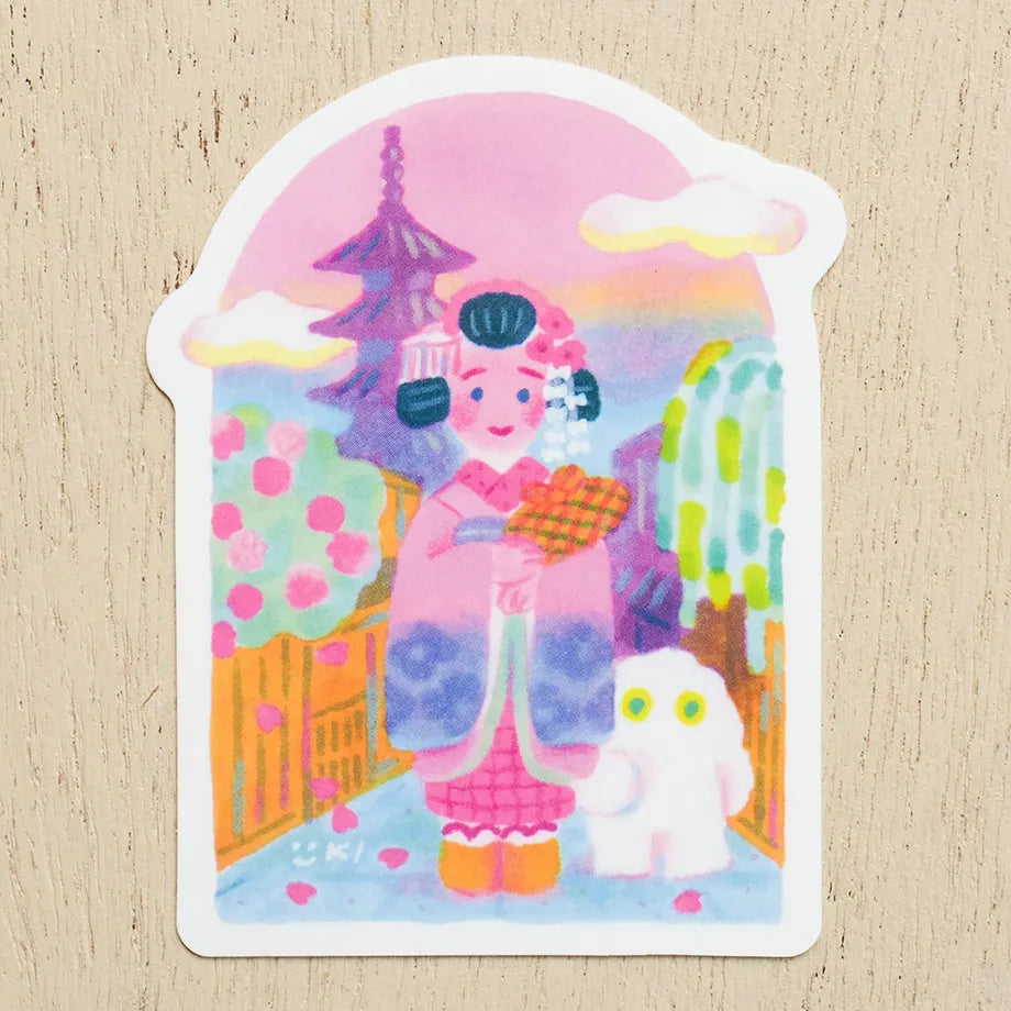 A vinyl sticker of cute Kyoto design illustrated by Japanese artist Yuki Itoi known for her colorful and fun illustrations.