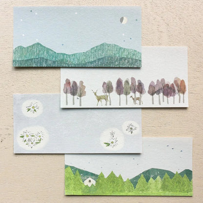 Beautiful high quality Mino washi paper memo pad of mountain designs by Japanese artist Yuko Omori perfect for quick messages, to-do lists, thank you notes, and memo. It includes a total of 20 sheets, with 4 unique designs and 5 sheets per design.