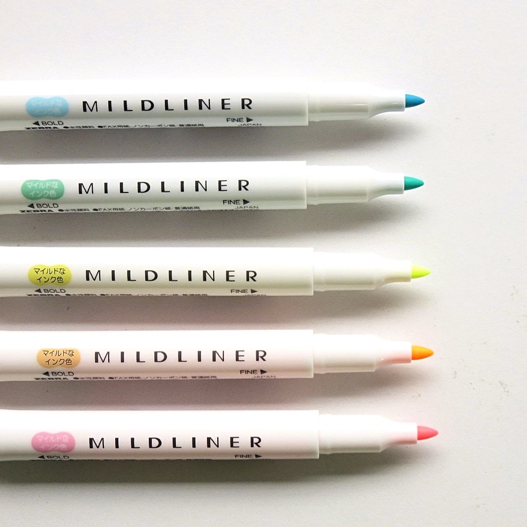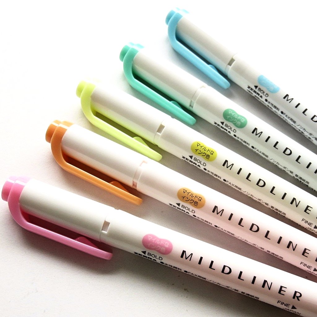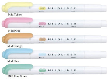 The gentle colors are easy on the eyes, and the ink is designed not to leak or smudge. Each highlighter features dual-ended tips, one thick and one thin, perfect for planners, Traveler's Notebooks, and Hobonichi Techo. Available individually or as a set of 5 (Blue, Blue Green, Mild Yellow, Mild Orange, Mild Pink).